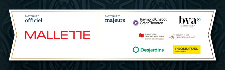 Soulignons que la tenue de la Soirée des Sommets est rendue possible grâce à la collaboration du partenaire officiel 2025 : Mallette. BCÉ souhaite également remercier ses partenaires majeurs : Promutuel Assurance, Raymond Chabot Grant Thornton, Desjardins, BVA et la Financière Banque Nationale – Groupe Financier Alain D’Anjou Lessard.
