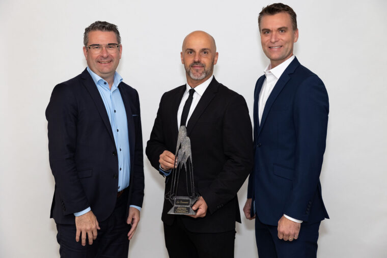 Sur la photo : M. André Bonneville, BVA et messieurs David Drouin et Jacques Labbé du Groupe Camnor.